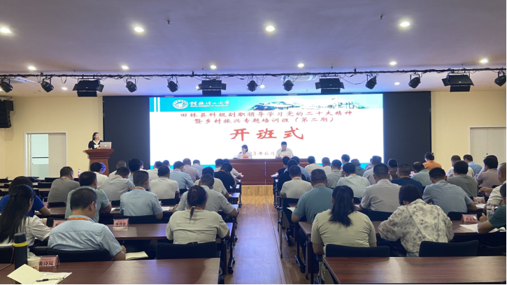 6月26日上午,“田林县科级副职领导学习党的二十大精神暨乡村振兴专题培训班(第二期)”在贝博官网顺利开班。田林县委组织部副部长周诚婕,贝博官网旅游与风景园林学院党委书记王璐以及来自田林县的近70位学员参加开班式。