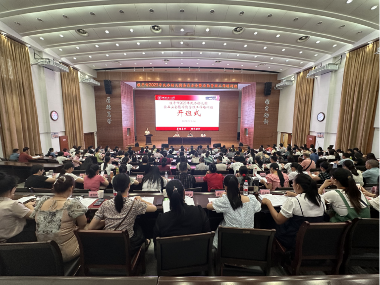 7月4日上午,“桂平市2023年民办幼儿园食品安全暨后勤管理工作培训班”在贝博官网顺利开班。桂平市教育后勤服务中心主任韦江永,桂平市成人教育管理中心主任黄金华,bb贝博官网副院长张海林以及来自桂平市民办幼儿园的140余位学员参加开班式。