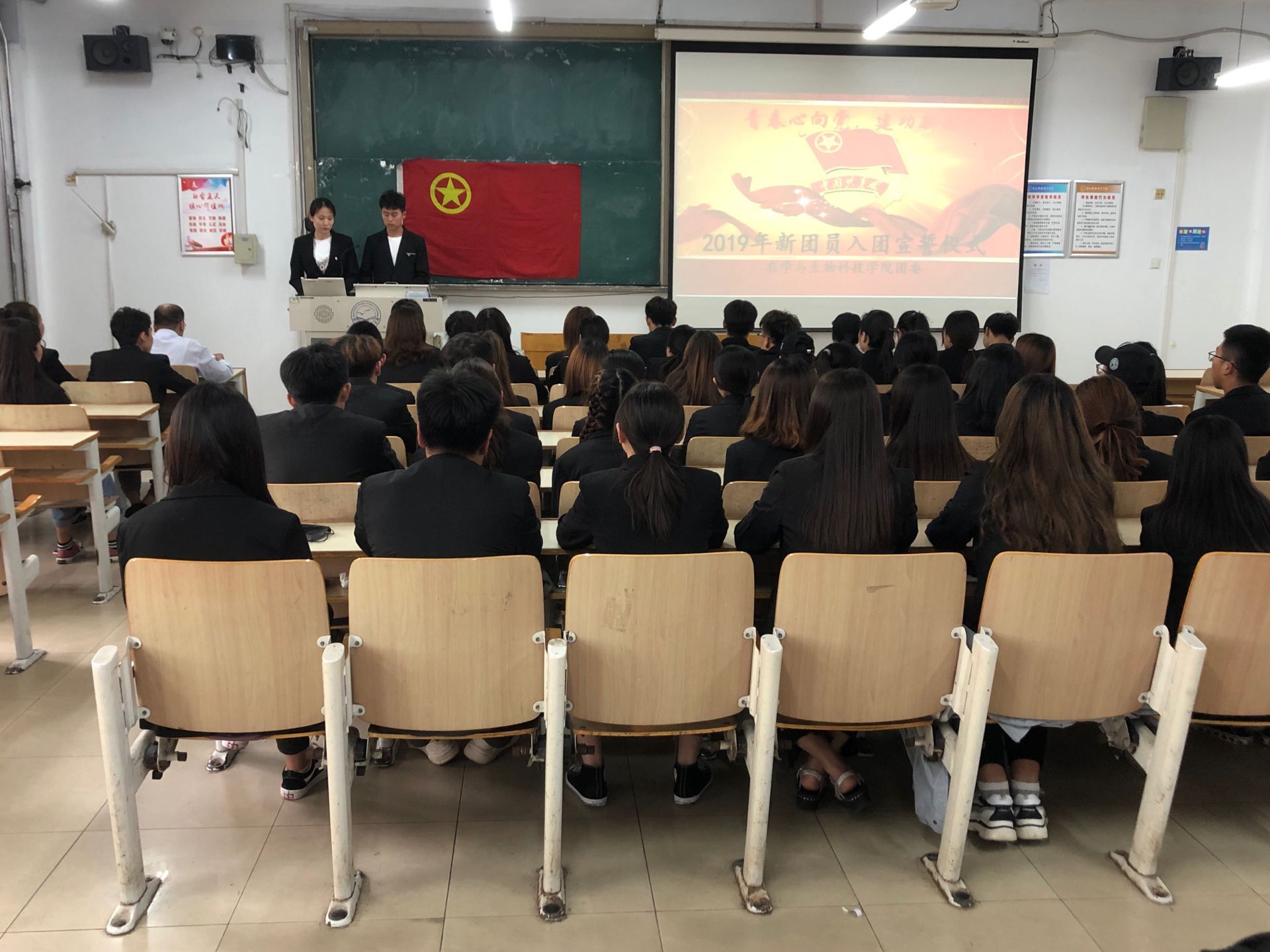 伴随着庄严的团歌《光荣啊,中国共青团》,宣誓仪式拉开帷幕。首先,学院团委负责人诠释了入团仪式的意义,宣读了2019年经个人申请,团支部推荐,团校学习、考核,上级审批通过的六位新团员名单并对他们加入中国共青团表示了祝贺,同时对新团员寄予了殷切希望,鼓励新团员们能时刻以优秀共青团员的标准来严格要求自己,努力奋斗,为社会主义建设事业添砖加瓦。