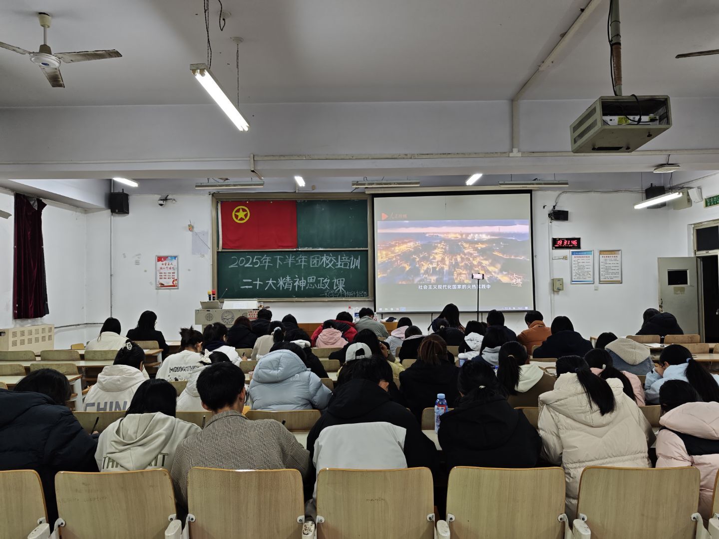 2025年11月3日,best365英国官网团委举办了以“学习党的二十大、二十届四中全会精神思政课,绽放青春绚丽之花”为主题的团校培训活动,旨在引导学员深入学习贯彻党的二十大、二十届四中全会精神,通过专业实践和志愿服务将个人理想与国家发展紧密结合。本次培训以观看视频形式进行,五十名入团积极分子共同观看本次主题思政课视频。