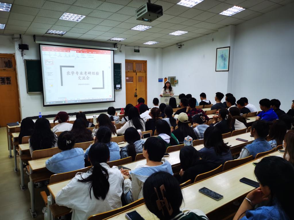 活动邀请了2023年成功上岸的6名同学与广大农学专业学生就学校选择、研究生资助政策、备考技巧、成功经验、心态调整等方面进行了交流。20农学专业、21农学专业、20植物科学与技术01班共计110名学生参与了活动。