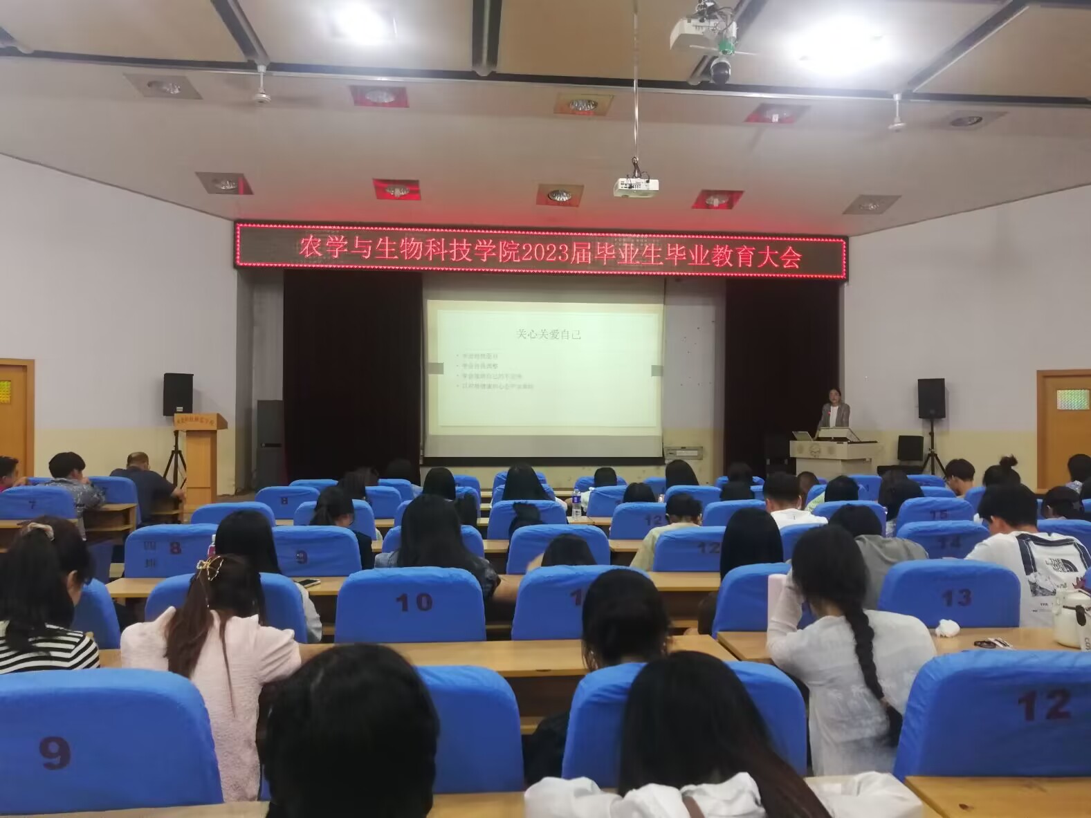 为了使我院毕业生顺利完成毕业前各项工作,安全离校,2023年5月30日,best365英国官网在昌黎校区学术报告厅召开了2023届毕业生毕业教育大会,学院领导、学工办老师、毕业班辅导员(班主任)以及全体研究生、本科毕业生近250余人参加了会议。
